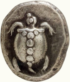 Τα πρώτα νομίσματα της ελεύθερης Ελλάδας εκόπησαν στην Αίγινα. Και είναι αξιοσημείωτο το γεγονός, ότι και το πρώτο αρχαίο ελληνικό νόμισμα, οι «χελώνες», είχαν κοπεί τον 7ον αιώνα π.Χ. πάλι στην Αίγινα, που τότε ήταν αποικία των Αργείων, από τον βασιλιά του Άργους τον Φείδωνα.