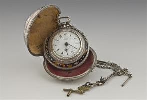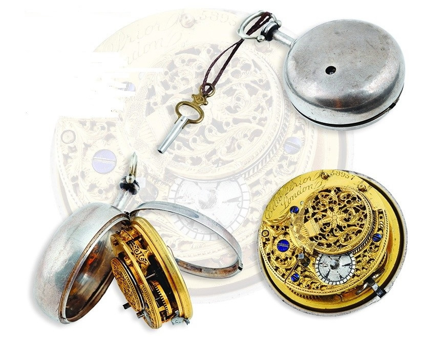 Πολύ αξιόλογο, είναι ένα Αγγλικό ρολόι τσέπης από τον καταξιωμένο ωρολογοποιό George Prior, που φέρει στην εξωτερική του θήκη το οικόσημο του Λόρδου Βύρωνα. Το ρολόι που απεικονίζεται παρακάτω με τις θήκες του, κατασκευάστηκε στο Λονδίνο στις αρχές του 19ου αιώνα, όταν η Αγγλία επωφελήθηκε από ένα ακμάζον εξαγωγικό εμπόριο στην Οθωμανική αυτοκρατορία και τις δυτικές επαρχίες της Ελλάδος, της Αλβανίας και των Βαλκανίων.