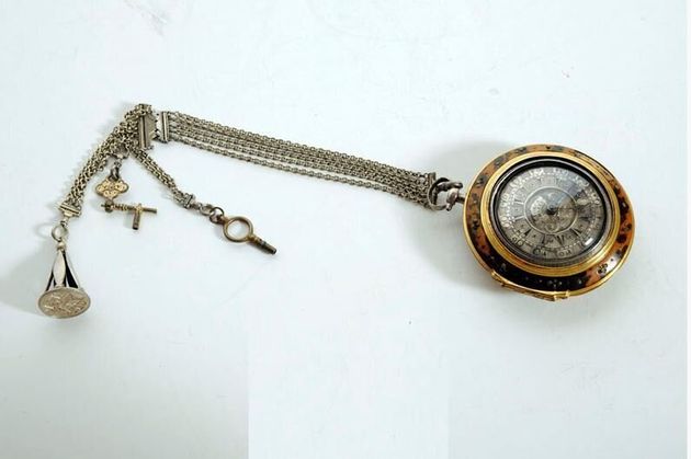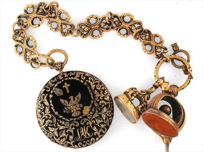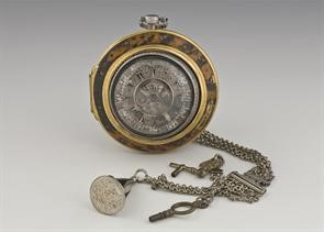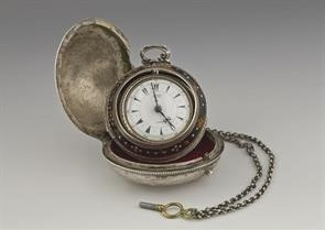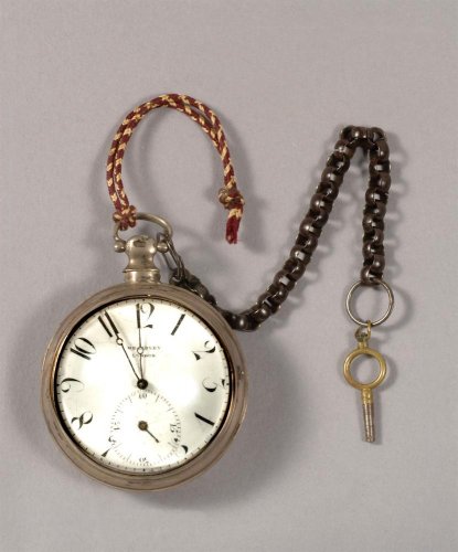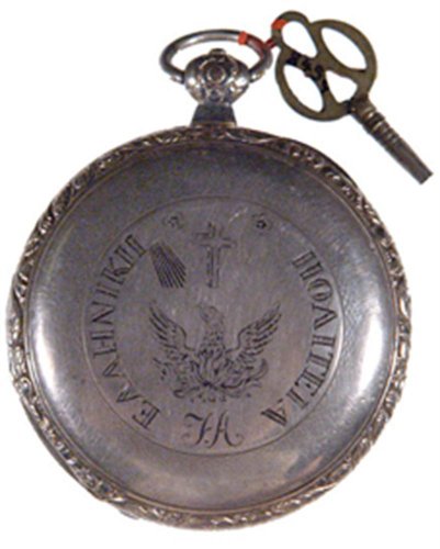 Ρολόι τσέπης με τρείς κάσες "τύπου κρεμμυδιού" που ανήκε στον Λάζαρο Κουντουριώτη (1782-1858), πολιτικό από την Ύδρα, κατά τη διάρκεια της Ελληνικής Επαναστάσεως. Είναι κατασκευασμένο στις αρχές του 19ου αι. από τον αγγλικό οίκο George-Charle για την Οθωμανική Αγορά. Από την αλυσίδα του εξαρτώνται μια μεταλλική σφραγίδα με τα αρχικά του κατόχου του και δύο κουρδιστήρια.