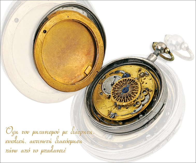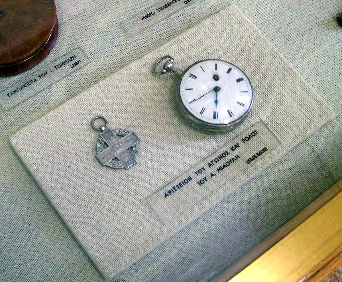 Το ρολόι τσέπης του Πετρόμπεη Μαυρομιχάλη, από τον ελβετικό οίκο Du Bois & fils, που δραστηριοποιείται έως σήμερα, του Κολοκοτρώνη - το πλέον περίτεχνο, άξιο μακράς παρατήρησης, πλήρες με σφραγιδόλιθους και κουρδιστήρι, δώρο του Καποδίστρια ως ένδειξη τιμής,με προέλευση ελβετική και τον αναγεννώμενο φοίνικα, έμβλημα της ελληνικής πολιτείας. Παραγγελθηκε στην Ελβετία και στο χρυσό καπάκι του φέρει το έμβλημα της ελληνικής πολιτείας, τον αναγεννώμενο φοίνικα, πάνω από το έτος 1821. Πάνω από τον φοίνικα, υπάρχει σταυρός και αριστερά οι ακτίνες ανατέλλοντος ηλίου.