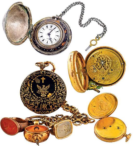 Ανάμεσα στα ιστορικά τούτα ρολόγια, ξεχωρίζουν εκείνα με τις διπλές και τις τριπλές θήκες, τύπου «κρεμμυδιού», όπως το ρολόι του Μάρκου Μπότσαρη,