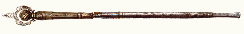 Άλλο πράγμα η στραταρχική ράβδος, αυτή ήταν το τούρκικο τοπούζι. Ένα ραβδί, δυο πιθαμές μάκρος που στη μια μεριά είχε ένα στρογγύλεμα με χυτό μολύβι μέσα για να βαραίνει και στην άλλη μεριά τελείωνε σε βέλος αγκαθωτό. Από παλιά το είχαν οι πασάδες και σαν έφερναν μπροστά τους κάποιον φταίχτη και ήθελαν οι ίδιοι να τον τιμωρήσουν, αν το φταίξιμό του ήταν μικρό, με το στρογγύλεμα από το τοπούζι του δίνανε κάμποσες στο κεφάλι, αν πάλι ήταν βαρύ το κρίμα, τον τρυπούσαν στην κοιλιά με το βέλος.