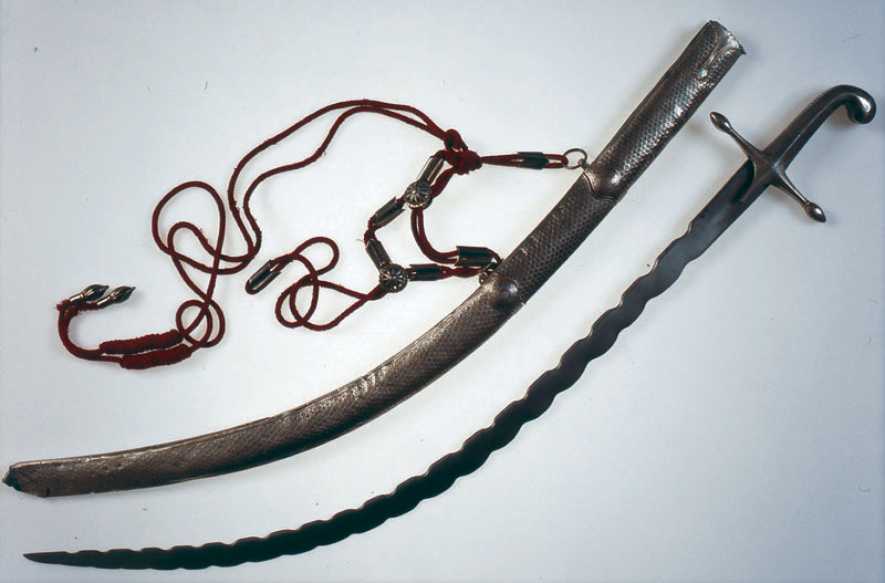 | Σπάθη με πριονωτή λάμα περσικού τύπου του Νικήτα Σταματελόπουλου (Νικηταρά), ανηψιού του Θεόδωρου Κολοκοτρώνη και πρωτεργάτη της πρώτης μεγάλης νίκης του ελληνικού αγώνα ανεξαρτησίας στη μάχη του Βαλτετσίου. Εκεί, με δύναμη 200 ανδρών απέκρουσε επίθεση 6.000, υποστηριζόμενων από πυροβολικό, Οθωμανών. |