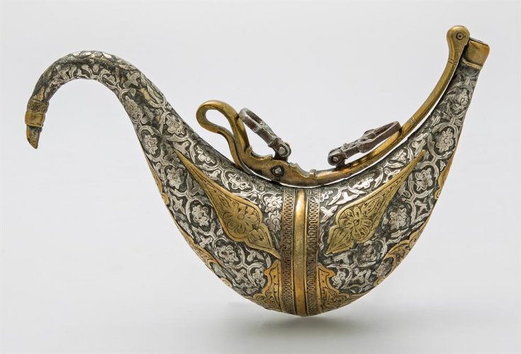 Η μπαρουτοθήκη είχε στόμιο μικρό για να ρίχνουν δόσεις μπαρουτιού. |