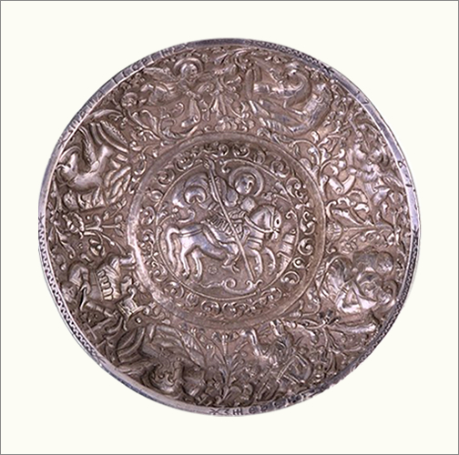 Επίχρυση παλάσκα με έκτυπο διάκοσμο από άνθη και πουλιά. Ύψ. 0,10 μ. (ΓΕ 6055) ΜΟΥΣΕΙΟ ΕΛΛΗΝΙΚΟΥ ΠΟΛΙΤΙΣΜΟΥ |
