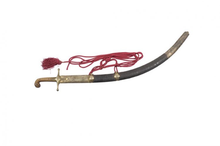 Γιαταγάνι με οστέινη λαβή του τούρκου στρατηγού Μαχμούτ Πασά Δράμαλη (1780-1822), που επιχείρησε ανεπιτυχώς να καταπνίξει την εξέγερση στην Πελοπόννησο. Μήκ. 0,73 μ. Δωρεά Δημήτριου Oρφανίδη (ΓΕ 9791) ΜΟΥΣΕΙΟ ΕΛΛΗΝΙΚΟΥ ΠΟΛΙΤΙΣΜΟΥ |